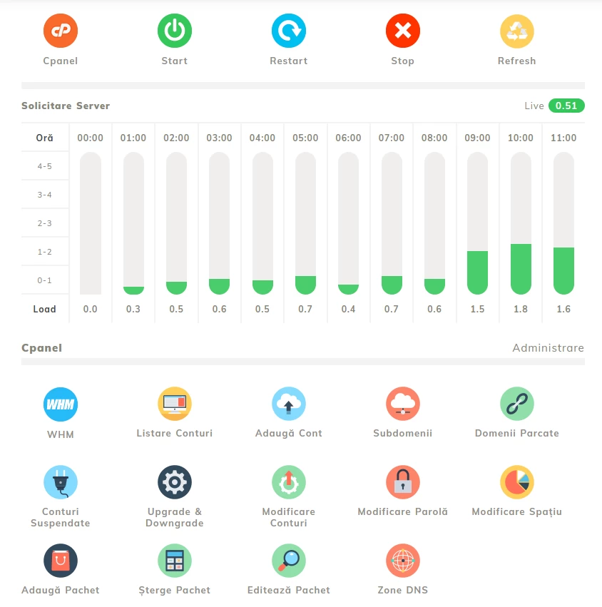 En plus des aspects introduits dans les forfaits partagés, les serveurs privés virtuels reçoivent également la possibilité de surveiller les requêtes du serveur depuis l'interface client de Hostico, ayant ainsi une vue plus claire de la consommation et des possibilités d'optimisation des ressources.