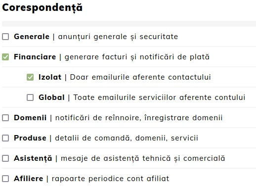 Important ! Pour configurer les notifications de facturation, dans la section Correspondance, cochez le champ Financier, qui ouvrira automatiquement deux cases à cocher supplémentaires :