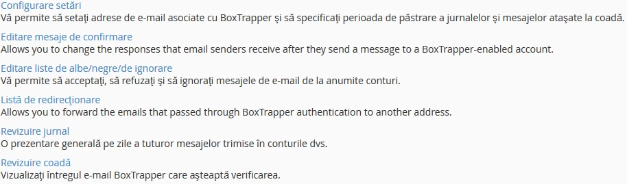 - après vous être connecté au panneau de contrôle cPanel, dans l'interface qui s'affichera, nous cherchons la section "ADRESSE E-MAIL", puis nous cliquons sur "BoxTrapper"