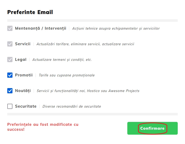 Mettez à jour vos préférences par email dans votre compte Hostico pour recevoir des notifications personnalisées concernant la maintenance, les services, les promotions et la sécurité.
