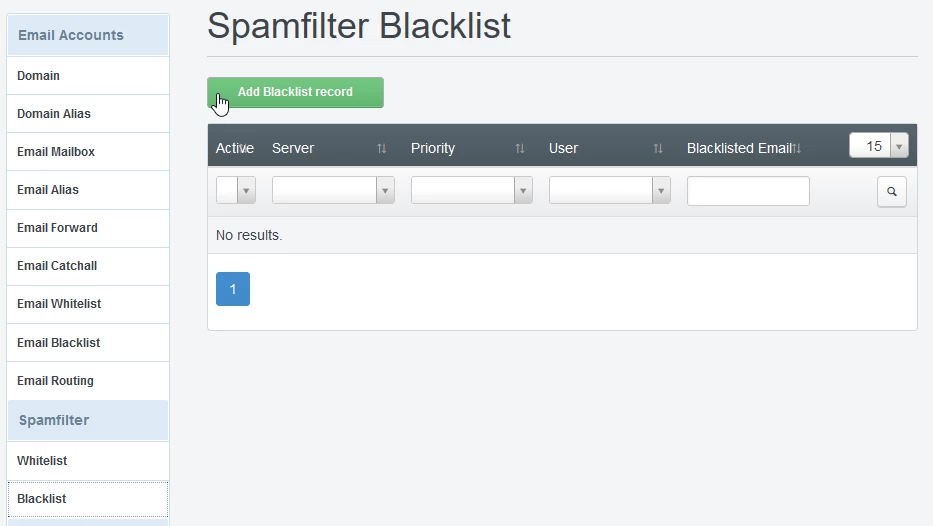 Ajouter une adresse e-mail à la liste noire du filtre anti-spam dans le panneau de contrôle ISPConfig.