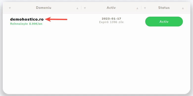 - Après connexion au compte client Hostico, allez dans la section Domaines ;