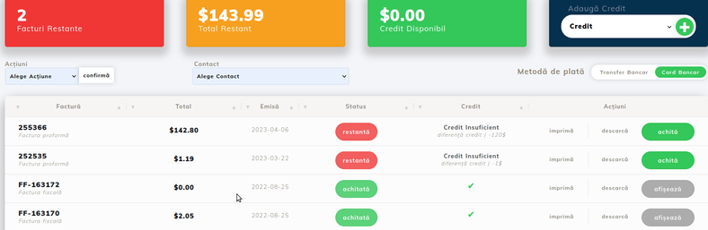 2. Carte de Crédit - Avec ce mode de paiement, le payeur ne peut pas être directement identifié, et la facture sera émise directement sur la base des données trouvées dans la proforma. - La modification des pro formas peut être effectuée plusieurs fois ; si le sous-contrat a été initialement rempli de manière incorrecte, il peut être révisé et la procédure demandée à nouveau ;