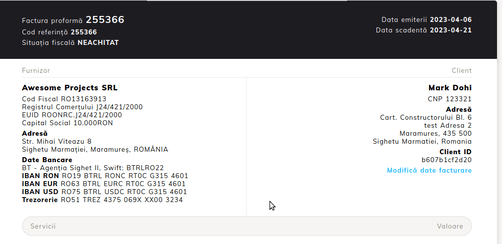 - Modifier les données d'une proforma ne signifie pas implicitement émettre la facture sur la base de ces données. Vous devez vous assurer que le paiement est effectué au nom de l'entreprise mentionnée sur la proforma. Pour les méthodes de paiement actuelles, cela signifie :