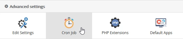 - Une fois connecté au panneau d'administration Webuzo, recherchez la section Paramètres avancés dans la fenêtre affichée et sélectionnez Tâche cron à partir de là.