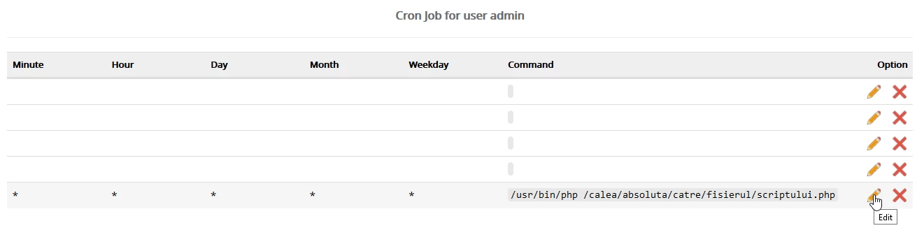- Ensuite, la tâche cron peut être consultée ou modifiée en bas de la page dans la section Tâche cron pour l'utilisateur admin.