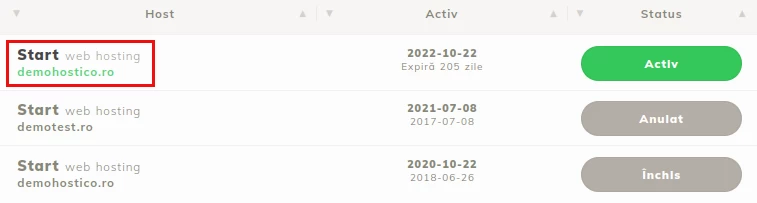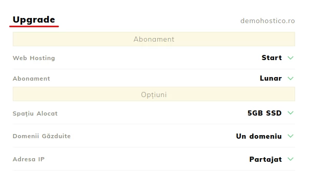 • Pour les commandes de downgrade, il est conseillé de contacter le support en ligne ou d'envoyer une notification à office@hostico.com, car une série de facteurs doit être analysée avant d'effectuer le changement.