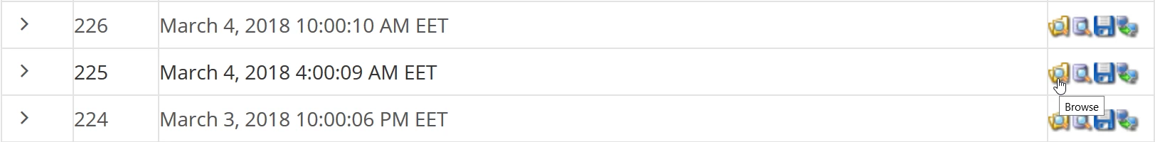 - Comme pour la restauration de fichiers, nous allons choisir la date souhaitée, mais cette fois nous cliquerons sur le symbole