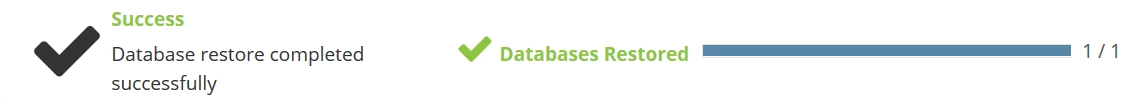 - Le temps de restauration varie en fonction de la taille de la base de données. À l'issue, nous recevrons un message de succès.
