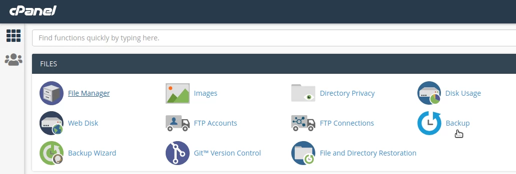 • Après vous être connecté au panneau de contrôle cPanel, dans l'interface qui s'affichera, nous cherchons la section "Fichiers" et là, nous sélectionnons "Sauvegarde"