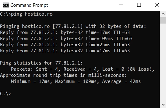 Dans notre exemple, nous pouvons voir que l'IP associée au domaine hostico.ro est 77.81.2.1.