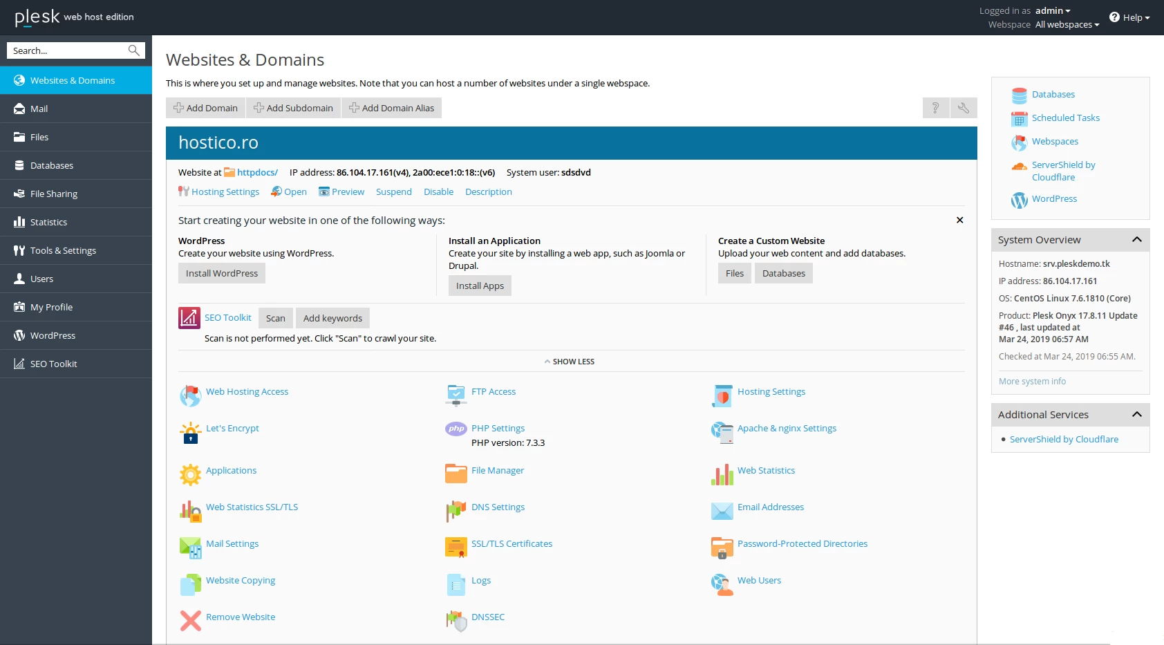 Les VPS avec le panneau de contrôle Plesk, gérés par Hostico, disposent de l'interface Power User View.